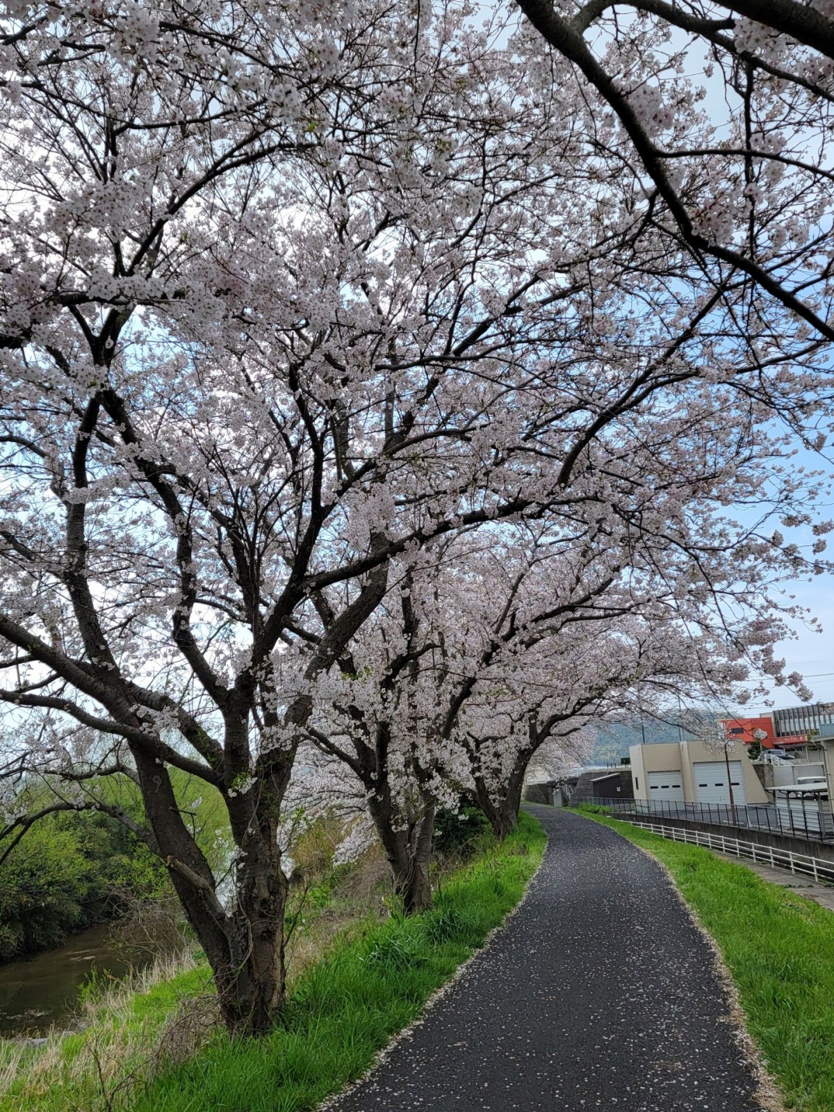 長久、桜まつり会場近くの桜並木です。
