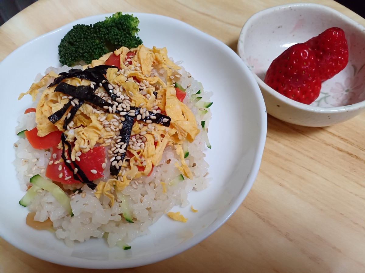 3月の初旬、ひな祭りの日にはちらし寿司を作りました!